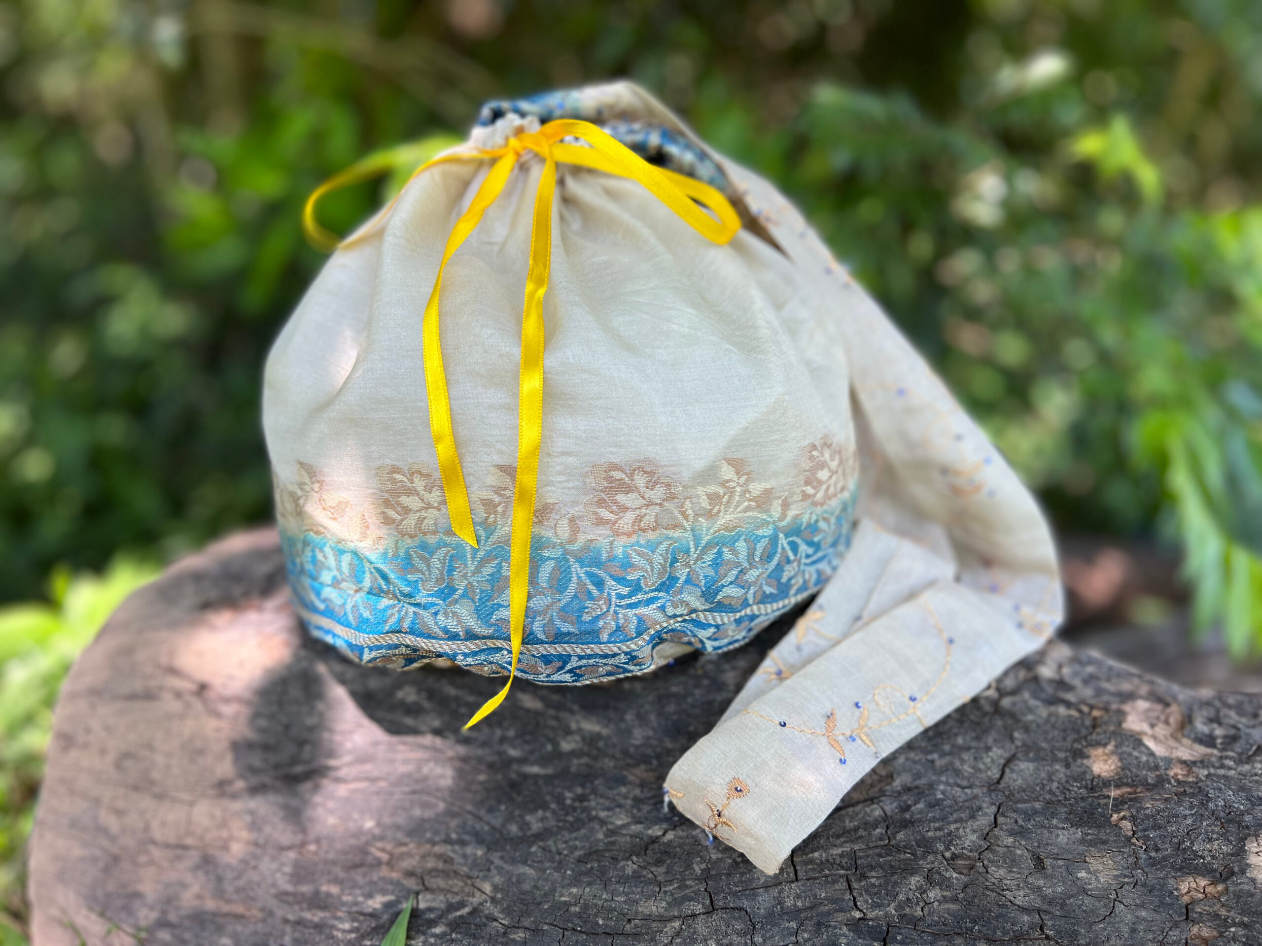 - Verschließbar durch ein Satin-Bändchen